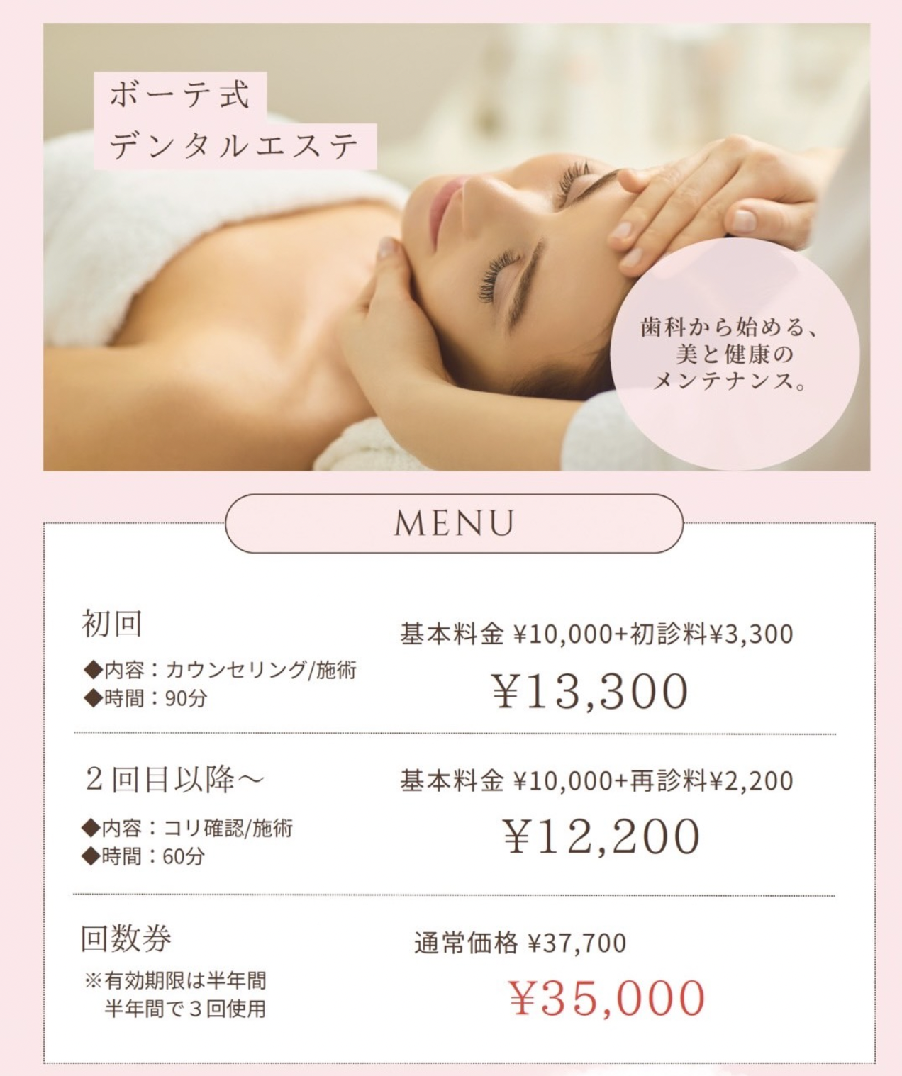 | 初回(時間90分) | 13,300円 |