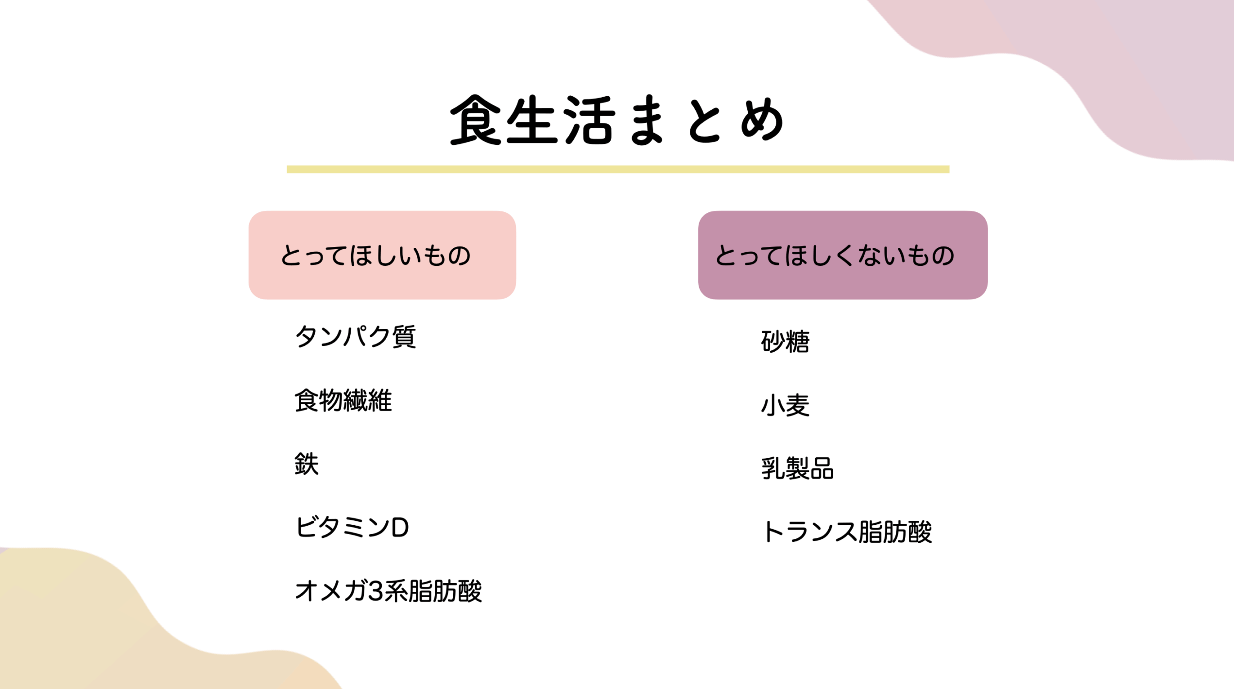妊娠中の食事は、お母さんとお腹の赤ちゃんの健康に大きく影響するため、非常に重要です。特に、赤ちゃんの歯の形成に必要な栄養素をバランスよく摂取することが大切です。また、妊娠中はむし歯や歯周病のリスクも高まるため、食事の内容だけでなく、食べ方や口腔ケアも意識する必要があります。ぜひマタニティセミナーでもお話ししているので参加してみてください。